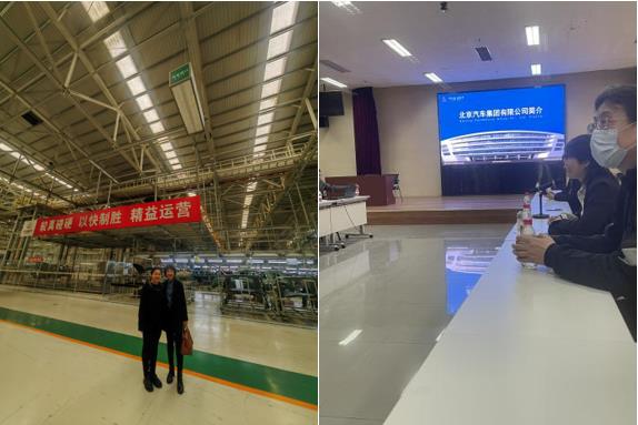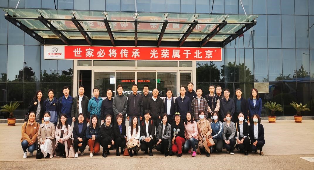 图1姜玲玲、崔莹参加北汽集团现场研讨会并与参会人员合影留念